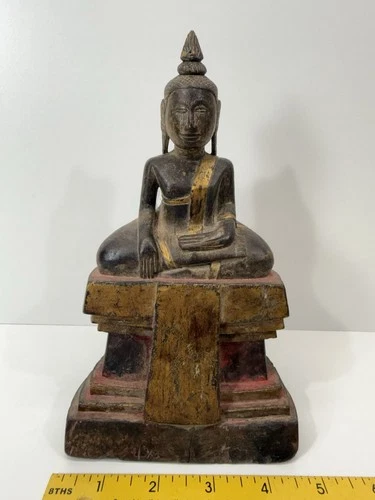 antique wooden 8” Burmese Shan Buddha statue 18th century 24k gold gild