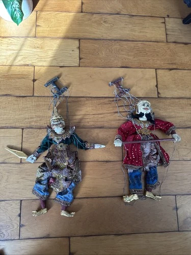 Antique BURMA BURMESE Handcarved Wooden & Porcelain Puppet Marionette Dolls 24”