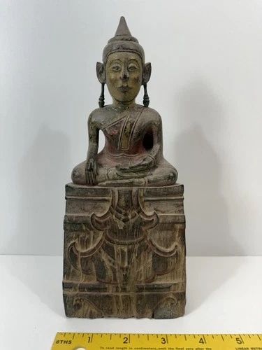 antique wooden 8” Burmese Shan Buddha statue 18th century Teak Wood