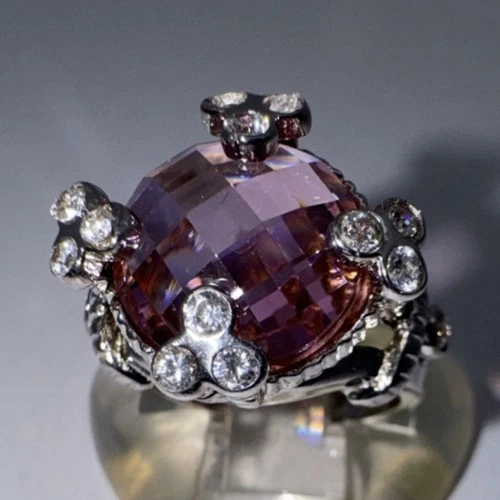 Sterling Silver ring size 4 1/2 cushion pink gemstone solitaire with accent gems