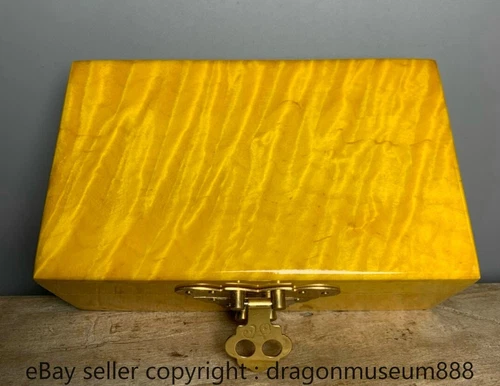 12" Old Chinese Yellow Huanghuali Wood Carving Flood Dragon Beast Storage Box