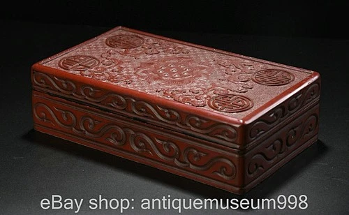 11.6" Old Chinese Red Lacquerwork Lotus “ 福 禄 寿 喜 ” Pattern Wenfang Box Case
