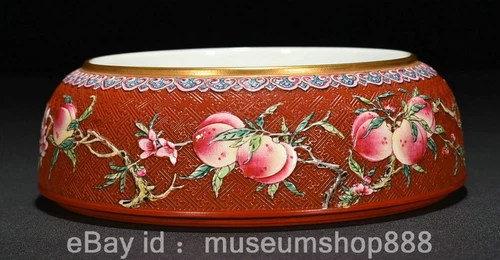 7" Old Chinese Qianlong Marked Pastel Porcelain Nine Peach Writing-Brush Washer