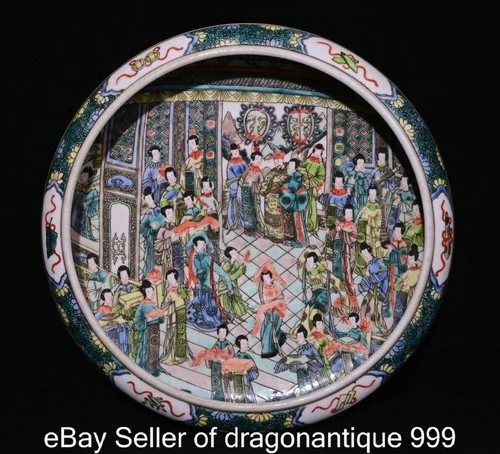 11" Old Chinese Kangxi Wucai Porcelain Character Story Writing Brush Washer