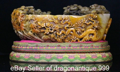 11" Old China Tianhuang Shoushan Stone Pine Plum Ganoderma Writing Brush Washer