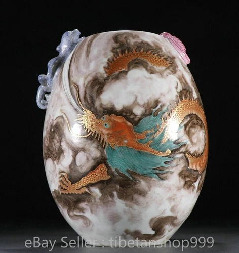7.6" Qianlong Marked Enamel Porcelain Gilt Dragon Phoenix Writing-Brush Washer