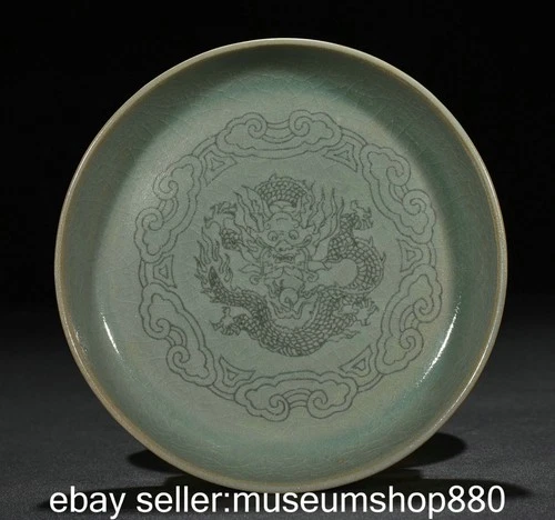 4.6" Old Chinese Song Ru kiln Porcelain Dragon Round Writing-brush Washer