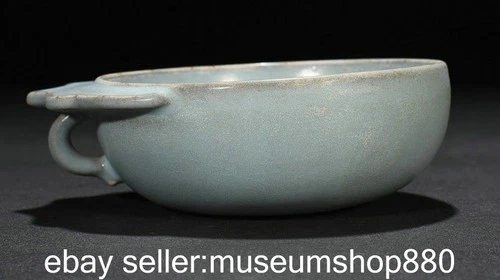 5.2" Old Chinese Song Ru kiln Porcelain Sky Blue Hat Ear Writing-brush Washer