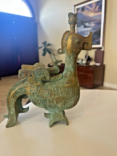 Archaic Chinese Bronze Zun (Ritual Wine Vessel) in the form of a Phoenix