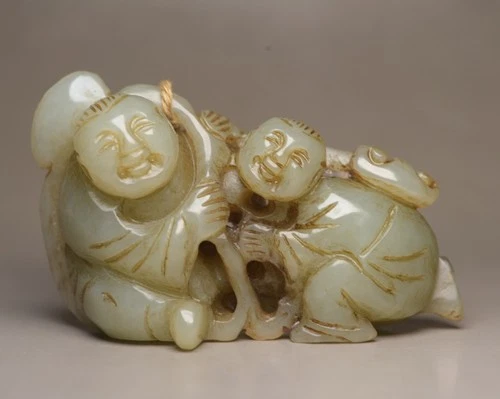 Old Beijing Natural Jade Hand Carved Traditional Motif Pendant Carving Monkey