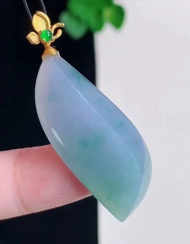 18K White Gold 100% Natural Icy Green Jade Jadeite Pendant 0322