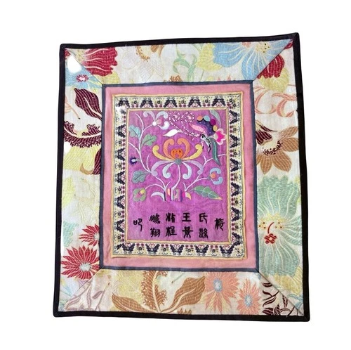 Antique EMBROIDERED SILK PANEL Tapestry Textile Excellent Condition