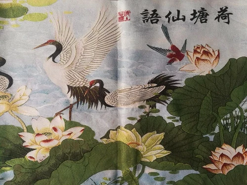 Old Chinese silk Embroidery Painting "Lotus Pond Fairy" 90256