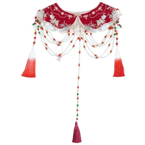 Chinese Ancient False Collar Embroidery Butterfly Pearls Tassels Yunjian Shawl