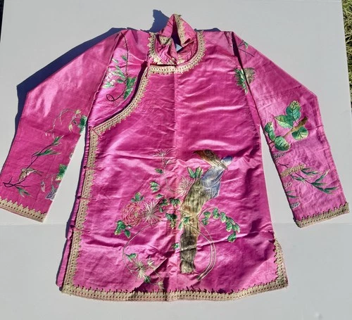 Vintage Chinese Silk Hand Embroidered Mid-Length Jacket Bright Pink Floral