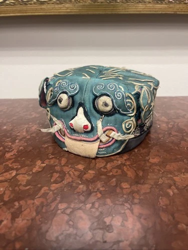 Vintage Chinese silk child's hat with a Dragon face design.