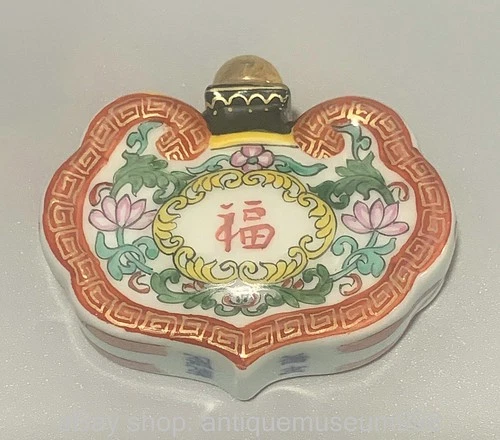 2.6" Old Chinese Qianlong Marked Enamel Porcelain Entangled Lotus Snuff Bottle