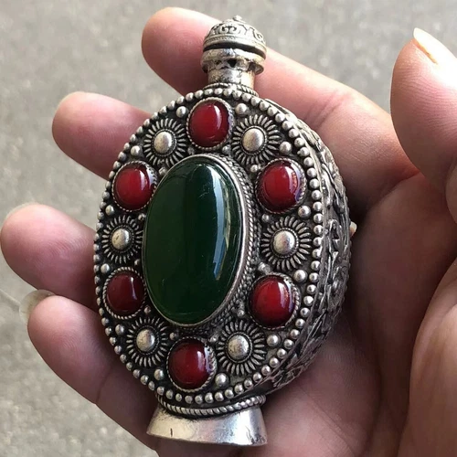 old TIBETAN SILVER FISH STATUE HOLLOW SNUFF BOTTLE PENDANT SMALL BELL COLLECTION
