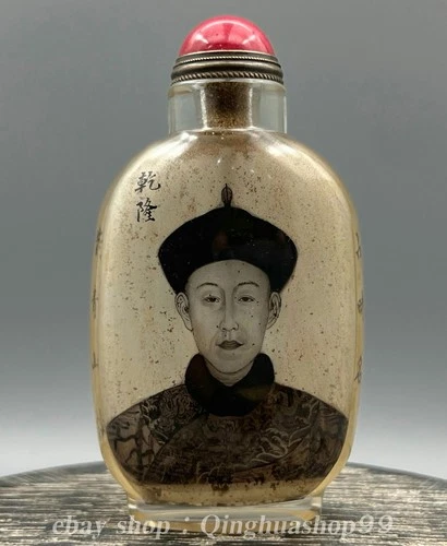 3.7" Old China Glass Inner Painting Qianlong Emperor Words Pattern Snuff Bottle