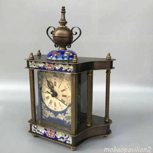 Exquisite Old Chinese copper Cloisonne Enamel handmade Mechanical clock
