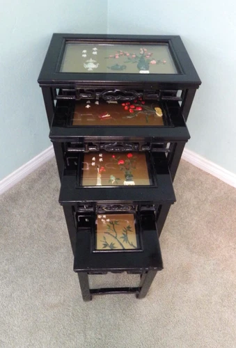 4 Chinese black lacquer nesting tables mid century modern Local Pickup San Diego