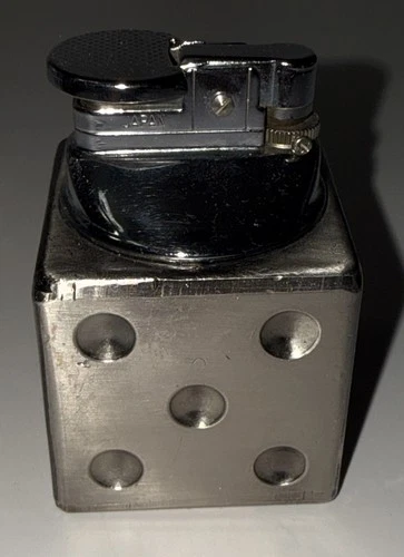 Vintage Japanese Dice Table Lighter Silver Metal See Photos