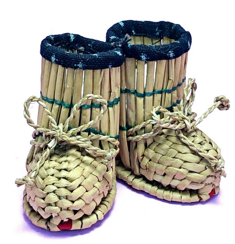 Kokeshi Doll Wicker Mini Straw Boots Snow Karuizawa Handmade Vtg Ningyo Figurine