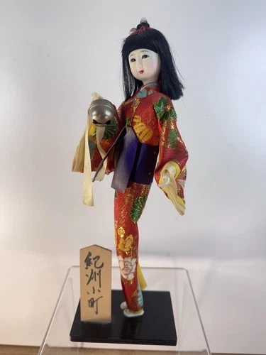 VTG Japanese Kokeshi Hietsuki Ningyo Kihara Doll In Kimono W/Geisha Bell 13”