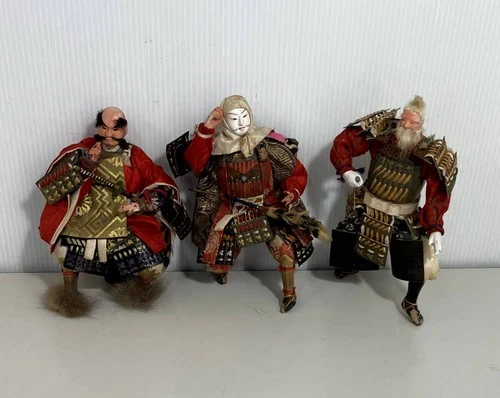 Rare Antique Japanese Satsuki Samurai Doll Set Of 3 Brocade costume armor