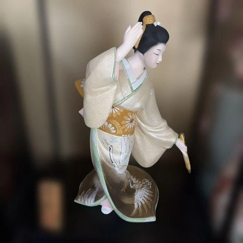 Antique Japanese Hakata Doll Ningyo Crane Dance by Yuji Kofukugawa