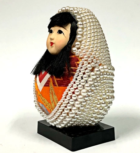 Japanese Luxury Hime Princess Daruma Doll Gofun Face Pearl Geisha Kimono