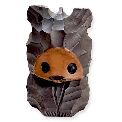 Japanese Wooden Craft Kokeshi Doll Mini Netsuke Shy Bear Ainu Carving Figure B80
