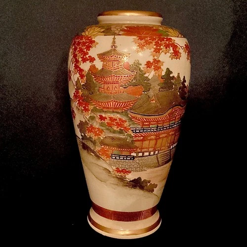 ~ Finely Detailed Handpainted Japanese Satsuma Vase ~ Showa Era