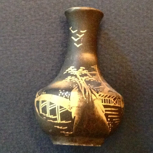 ~ Antique Japanese Black and Gold Satsuma Miniature Vase - Showa Era