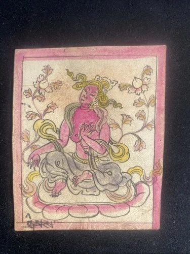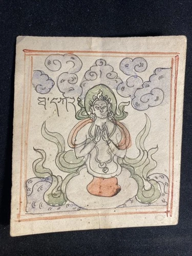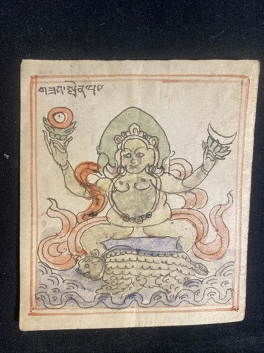 Antique Mongolian Tibetan Buddhist Tantric Amulet Painting Mongolia #A1-8x9