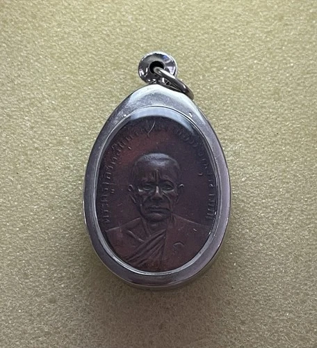 Luang Phor Sod Wat Paknam Thai Amulet Silver Tone Oval Pendant Gold Case