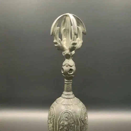 Ornate Antique Tibetan Ghanta Etched Brass Bronze Bell 6"