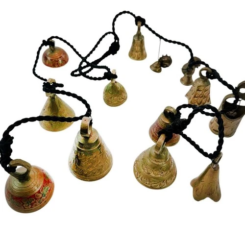 Lot 16 Etched Brass Miniature Bells Claw India Various Shapes Floral Painted
