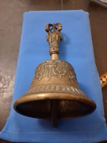 VINTAGE TIBETAN BRASS Bell 6.5" Intricate Temple Handcrafted Meditation Bell