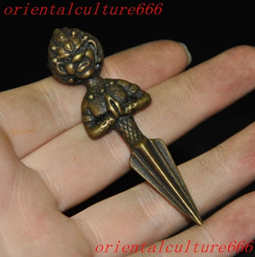 2.8"Tibetan Buddhism temple bronze Buddha head Vajra Phurpa Dagger equipment