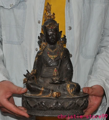 12.8"Tibet Buddhism temple bronze Gilt Padmasambhava Guru Rinpoche Buddha statue