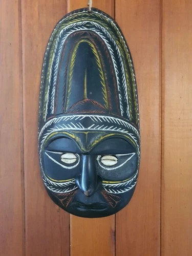 PNG Sepik Carved Wooden Mask w Cowrie Shell Eyes Tribal Carving Wall 42.5cm