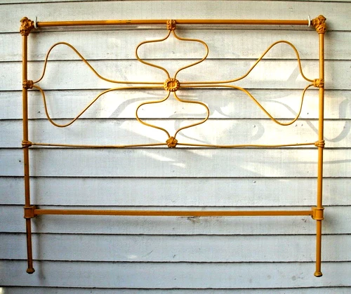 Antique Cast Iron Bed Farmhouse Victorian Floral Yellow Broken Rail Attachment