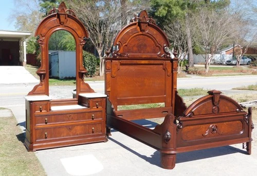 Walnut Victorian 2 Piece Bedroom Set ~ Bed and Drop Center Dresser