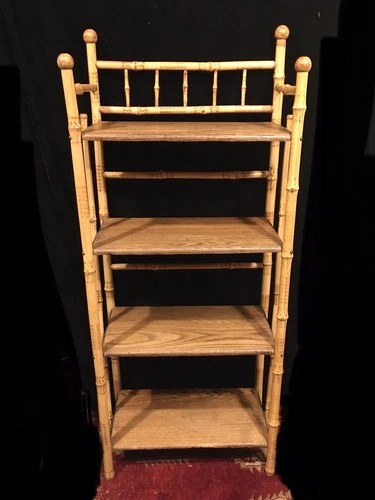 Antique 46" Bamboo and Oak Stick Ball Display Book Shelf Plant Fern Stand