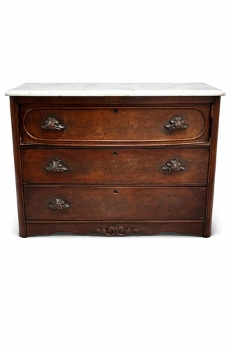 Antique Victorian Carved Walnut Dresser w/ White Marble Top – 3 Drawer Chest