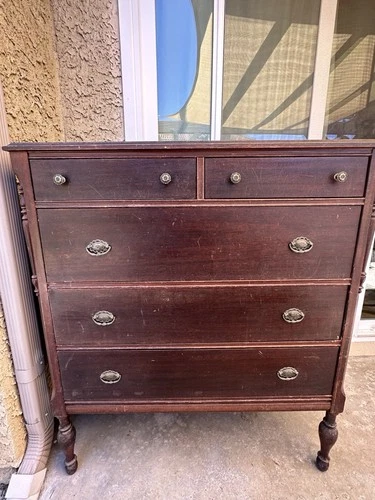 Vintage 1920s Solid Wood Dresser – Colonial Queen Anne Style – 5 Drawer Chest