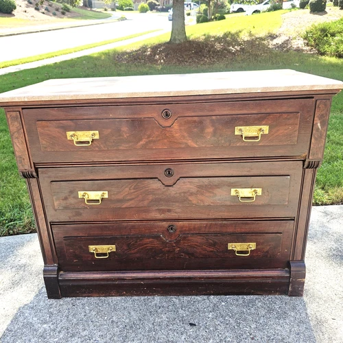 Antique 1800s French Country Granite Top Chest Of Drawers Dresser Nightstand Key