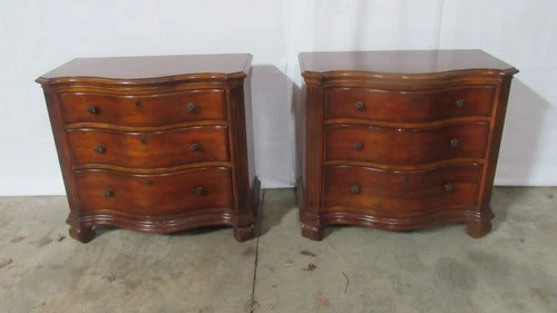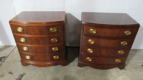 Pair Thomasville Nightstands Mahogany Collection Bowfront Banded Chests