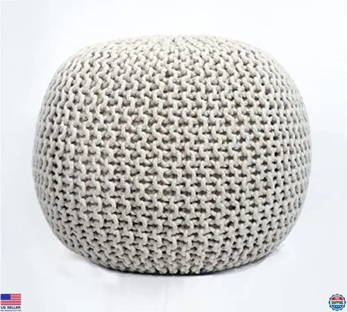 FRELISH DECOR Hand-Knitted Round Pouf Ottoman - 100% Cotton Foot Stool & Bean